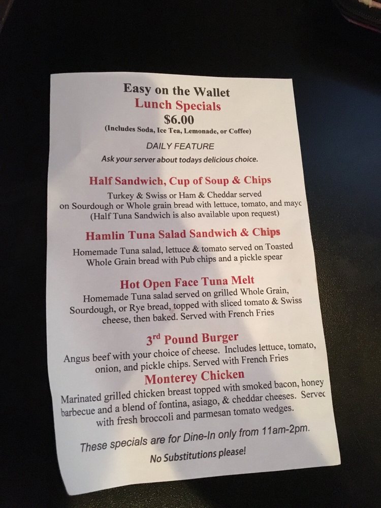 Hamlin Pub Menu (Update 2025)
